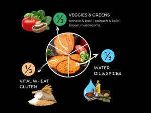 No imitation animal fats here, no fillers or junk! Instead, we packed it with wheat protein, delicious veggies, greens, and mushrooms.