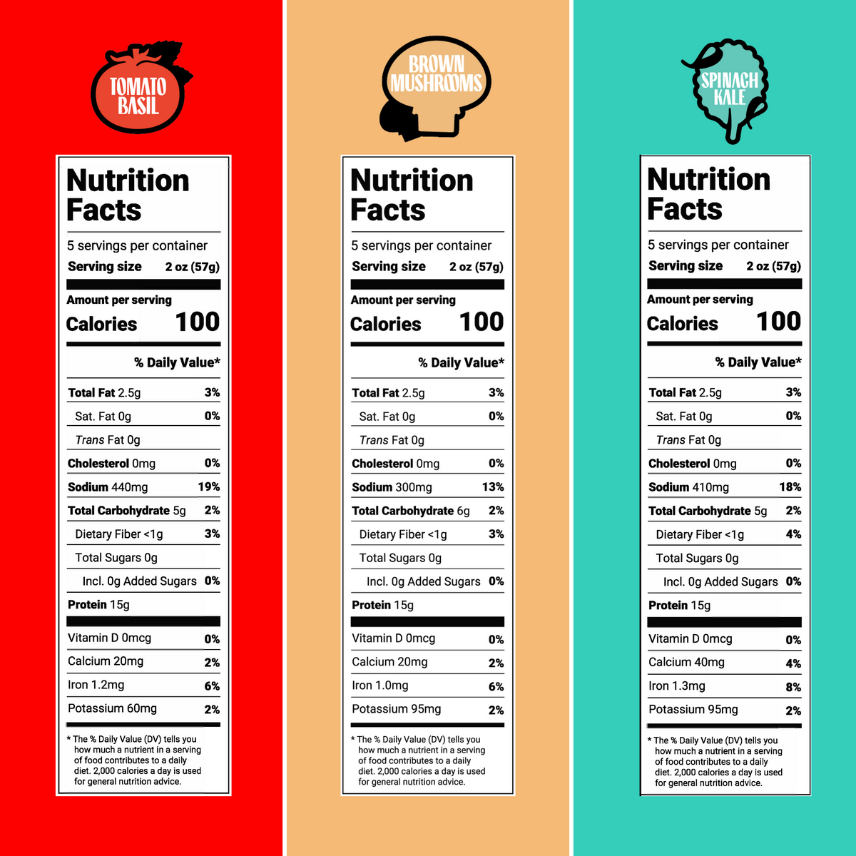 Ingredients: Vital Wheat Gluten, Water, Spinach, Kale, Soy Sauce (Water, Soybeans, Wheat, Salt), Avocado Oil, Salt, Garlic Powder, Nutritional Yeast, Beetroot Powder, White pepper, Onion Powder.